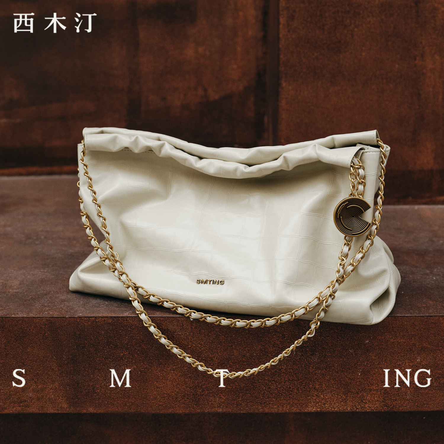 西木汀 程梓同款 悠途 头层牛皮包包新款女托特包小大容量链条包包 奶白色