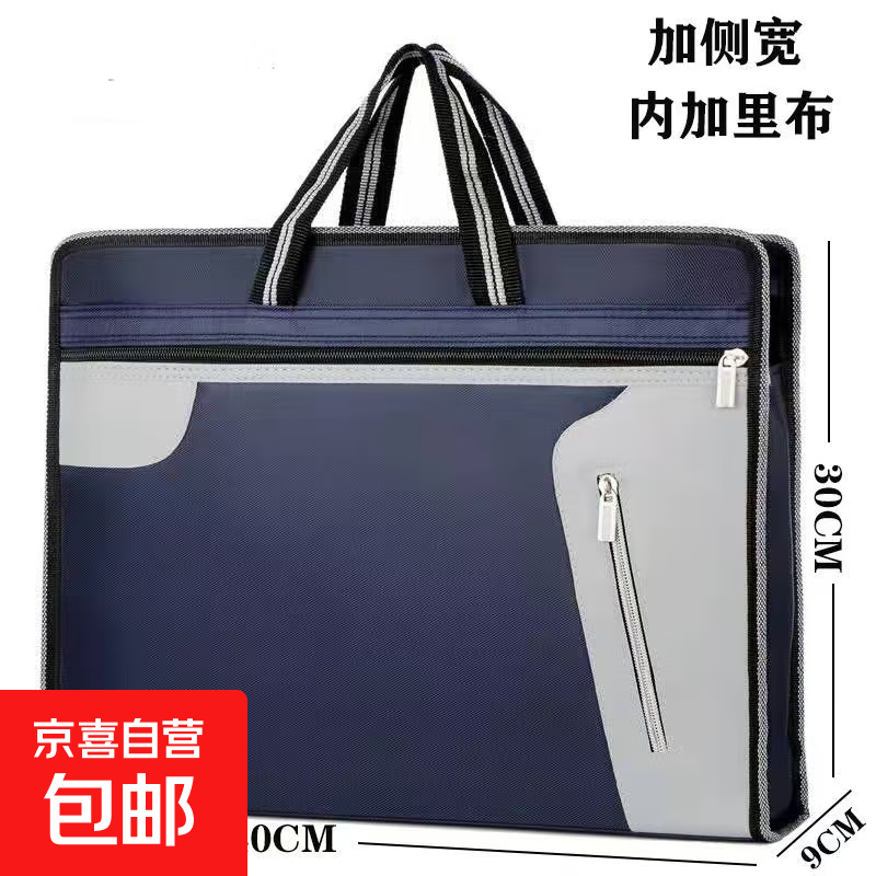 大容量轻薄款商务手提电脑包防震气囊男士公文包出差通勤手提包 藏蓝色皮质拼接-加宽侧边-性价比 15.1英寸-16英寸
