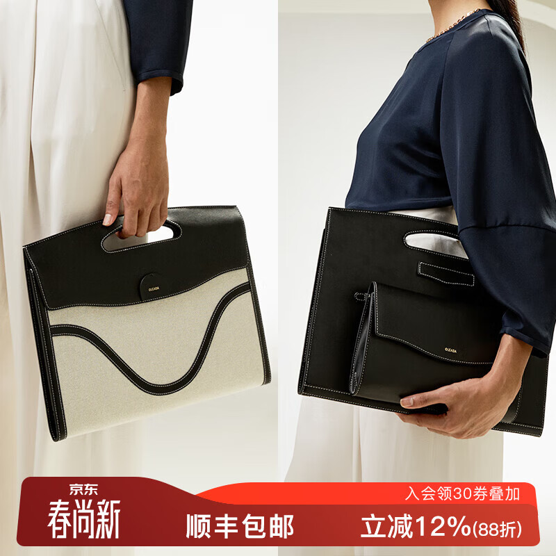 OLEADA信封包新款时尚16寸笔记本电脑包男女通用手提公文包38妇女节礼物 黑色拼色[加大号]13~16寸电脑