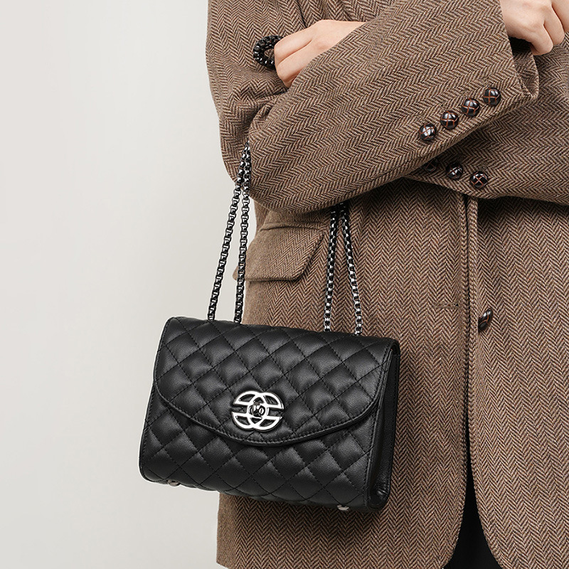 品牌小香风菱格链条包新款时尚百搭肩包轻奢经典女包真皮包