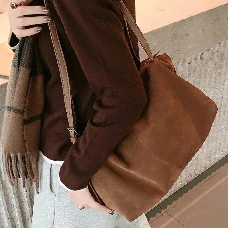 2025秋冬麂皮包质感真皮hobo手提斜挎包小包包高级感饭盒枕头包