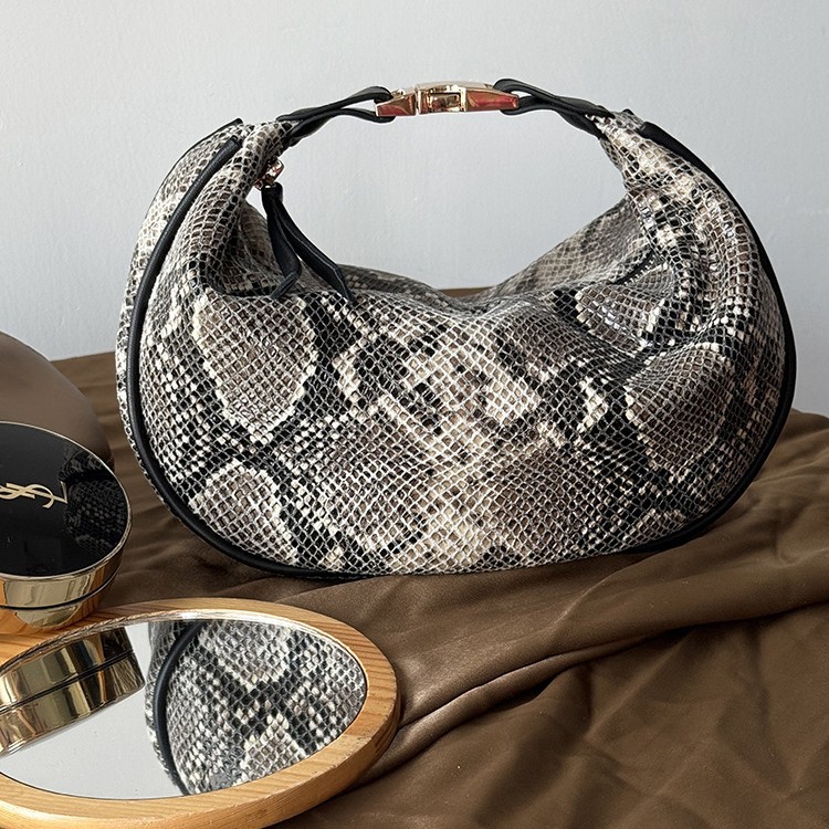 普洛克正品真皮皮包绵羊皮蛇纹印花金属扣高级手挎女士轻奢手拿包
