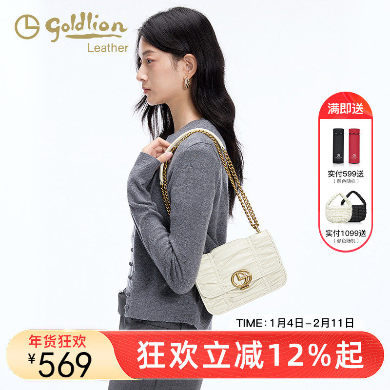 金利来2025新款女士真皮包包斜挎包时尚轻奢褶皱链条单肩小方包包