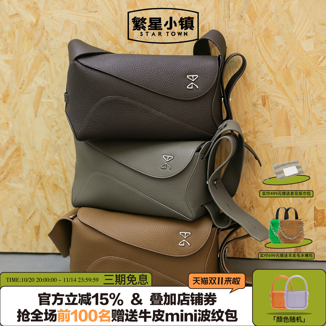 STARTOWN繁星小镇原创设计飘带枕头包真皮单肩斜挎包包牛皮包包