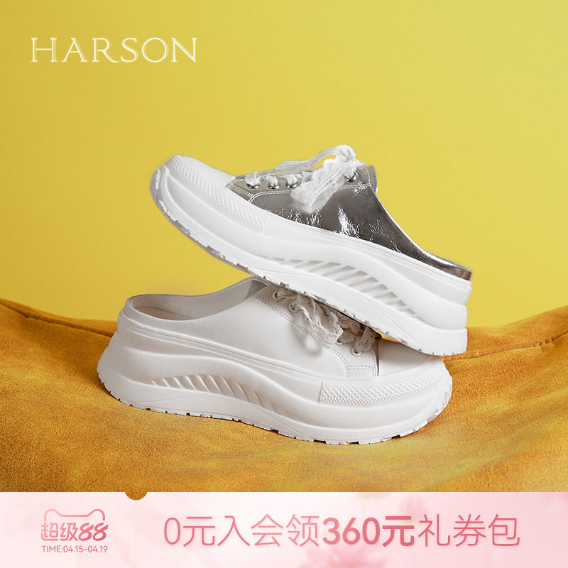 哈森真皮包头拖鞋女夏季新款休闲蝴蝶结运动凉拖HCM258412
