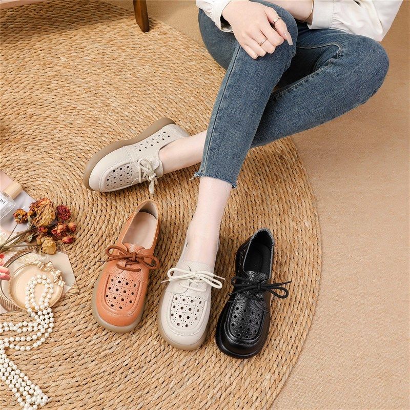 真皮包头凉鞋女透气洞洞鞋舒适皮鞋软底中老年妈妈鞋大码老人单鞋
