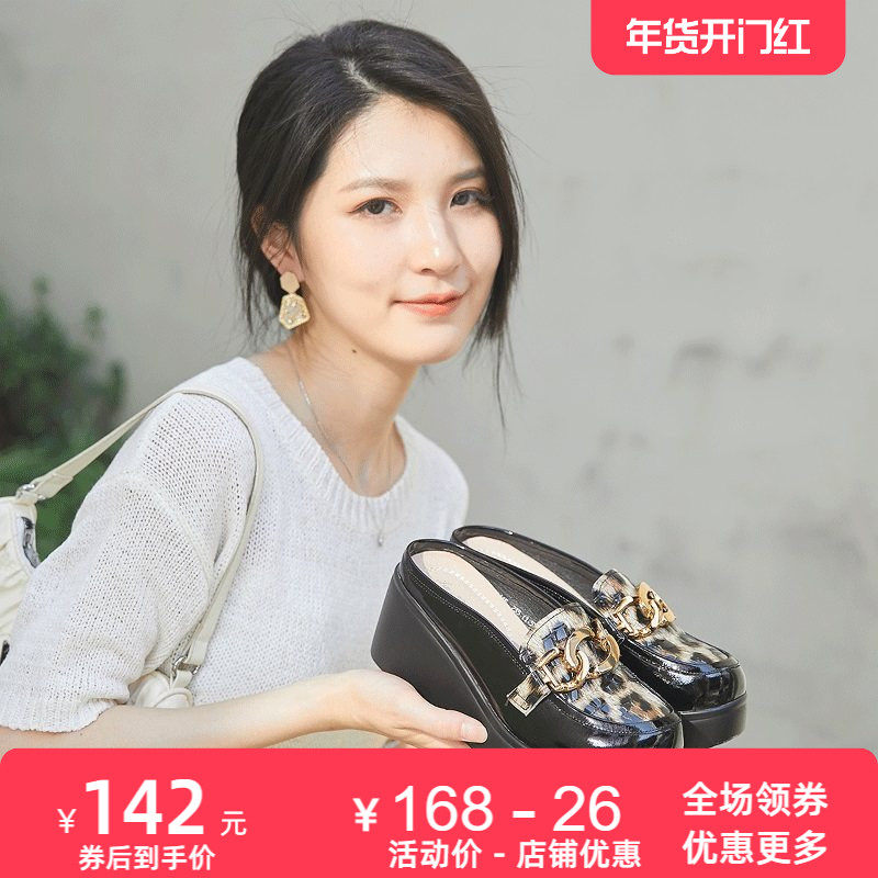 真皮包头厚底爆款半拖鞋女夏松糕休闲小白鞋网面透气外穿增高凉拖