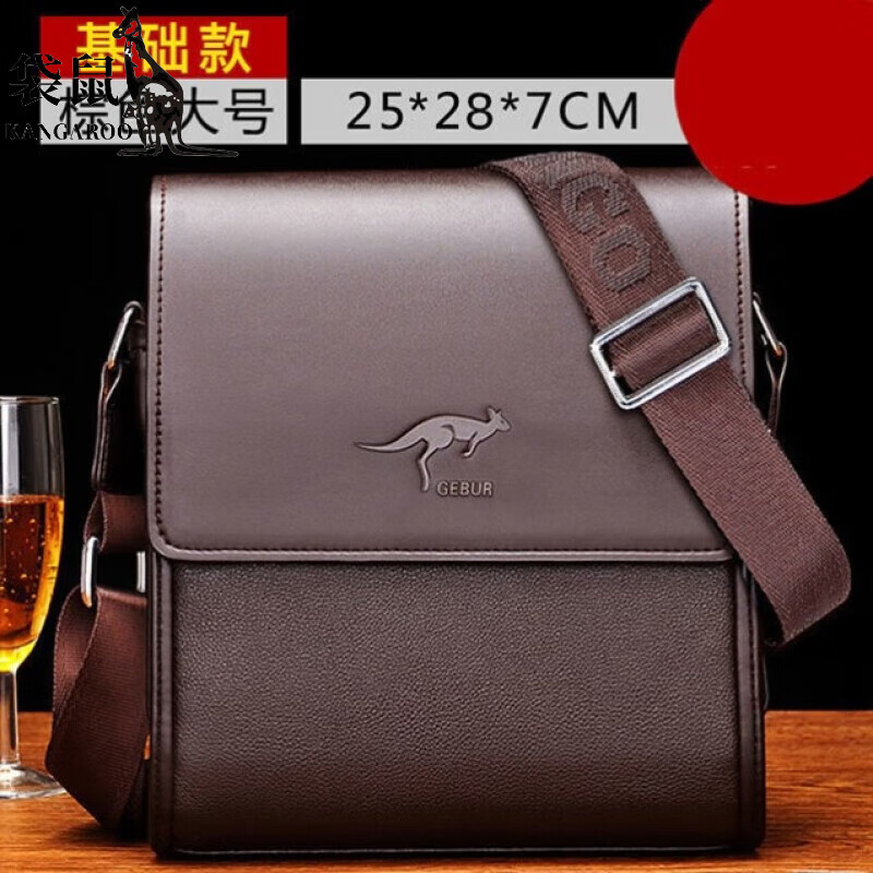 袋鼠新款2024男士皮带商务时尚休闲斜挎包男款皮包商务公文包加伯包 R68-7000-*1大号棕色 钱包皮带卡包钥匙包