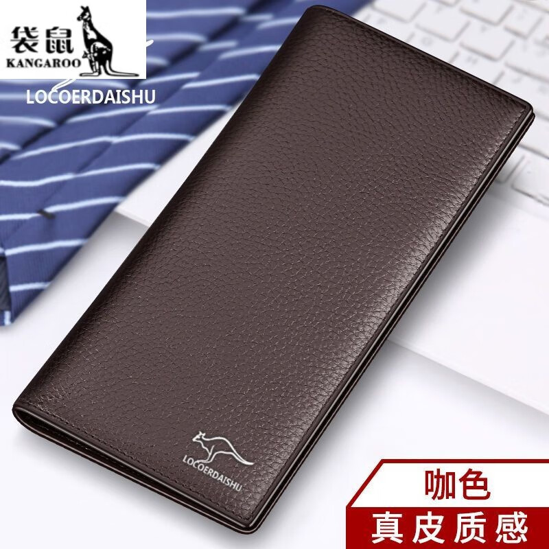 袋鼠男士钱包长款超薄商务钱夹新款卡包中老年竖款纯色软皮夹皮包 棕色【升级款】晒图3张退差