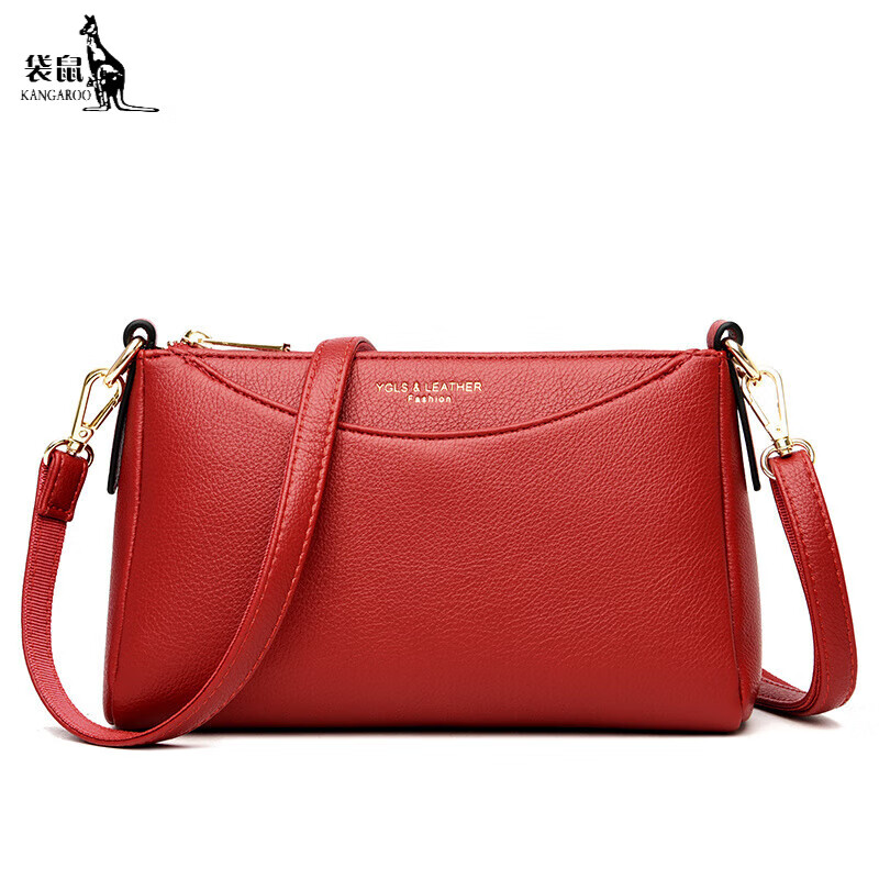袋鼠夏季时尚小包包女2025简约百搭单肩斜挎包中年女士妈妈真皮包 红色