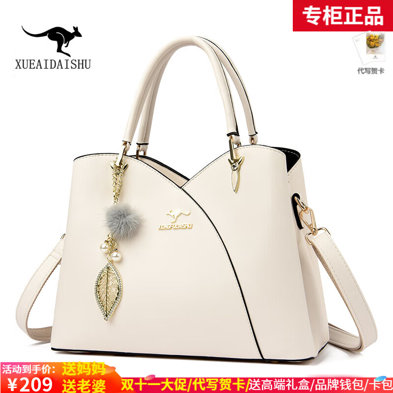 雪爱袋鼠品牌真皮包包女包2025新款女士大容量手提包秋冬斜挎包送妈妈老婆 白色【高端礼盒+手包卡包】 【长辈喜欢的礼物】