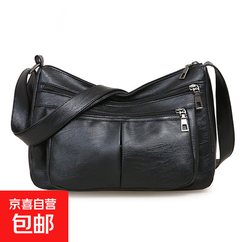 斜跨包女中年妈妈款大气休闲中老年单肩婆婆软皮大容量时尚羊皮包 黑色