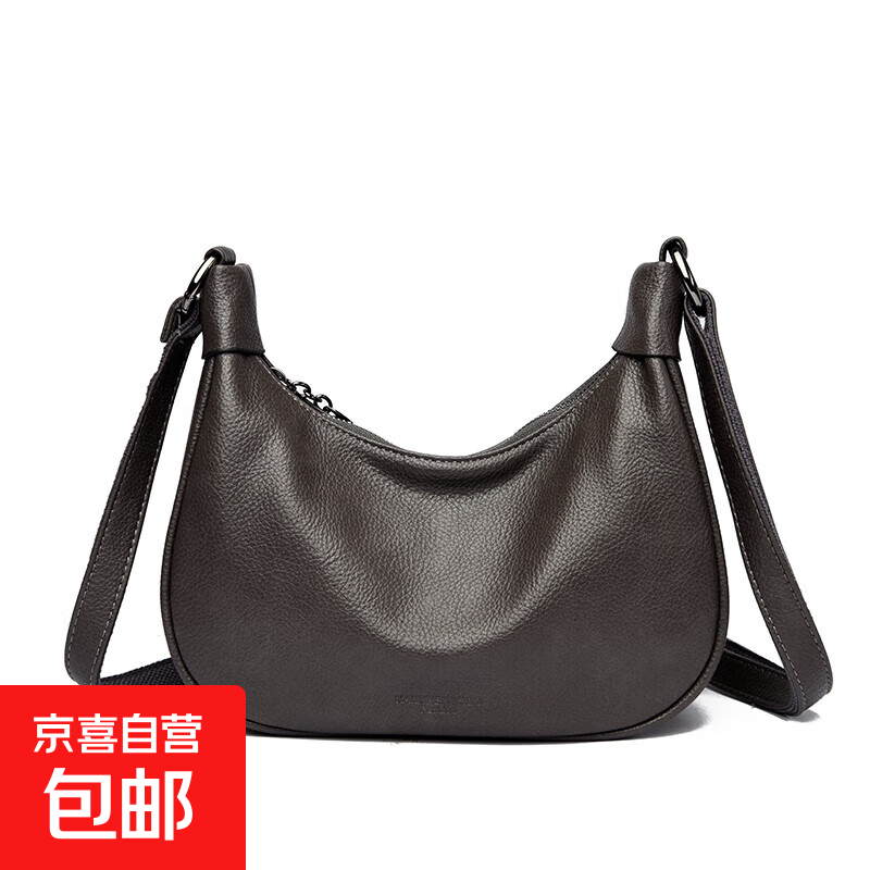 斜挎包女2025新款小众设计牛皮包单肩包真皮中年妈妈通勤包月牙包 灰色