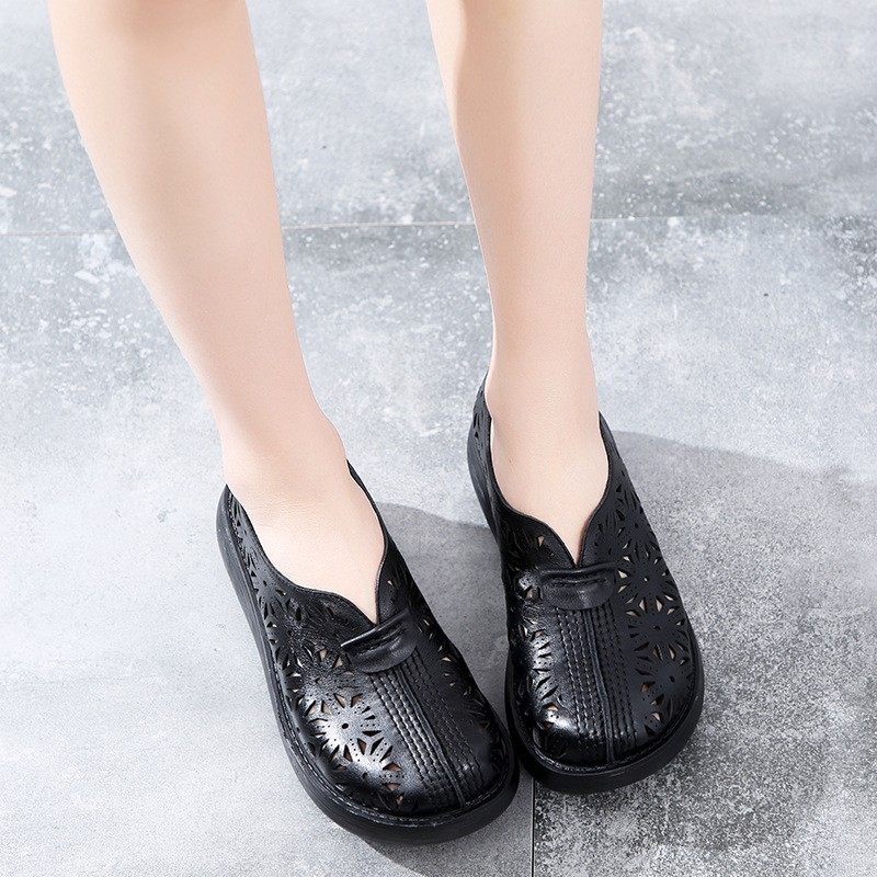 876厚底洞洞凉鞋民族风真皮包头镂空凉鞋妈妈鞋春夏新松糕坡跟