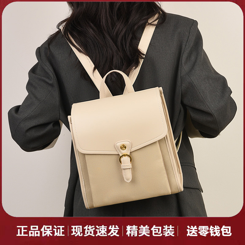 品牌正品真皮包包2025新款时尚大容量通勤撞色双肩包旅行背包女包