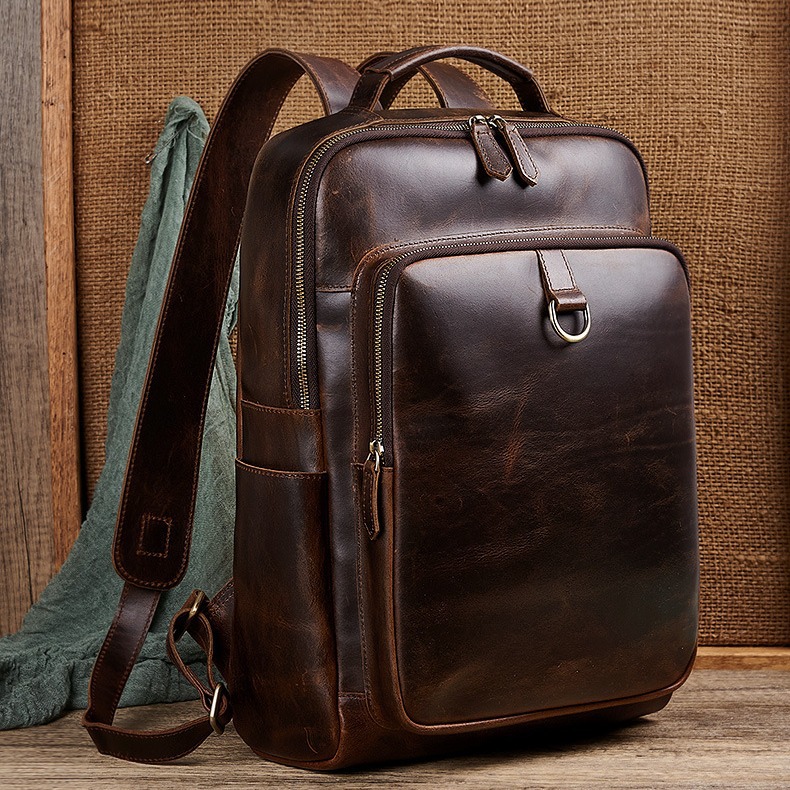 真皮双肩包男头层牛皮商务电脑包皮包植揉皮旅行背包男包跨境