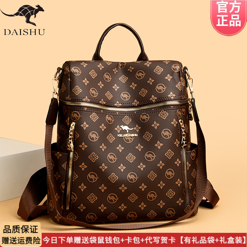 正品袋鼠女包时尚韩国双肩包休闲旅游背包大容量2025新款真皮包潮