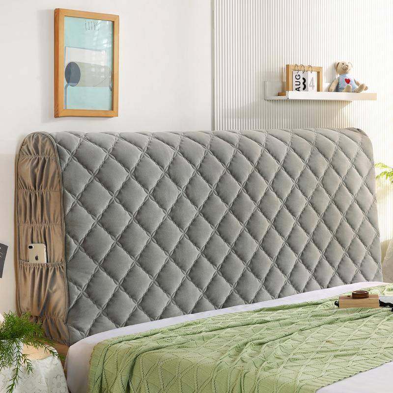 Fh($px}$棉?双面可用床头罩套防尘套遮丑猫爪夹加厚木背床全皮包