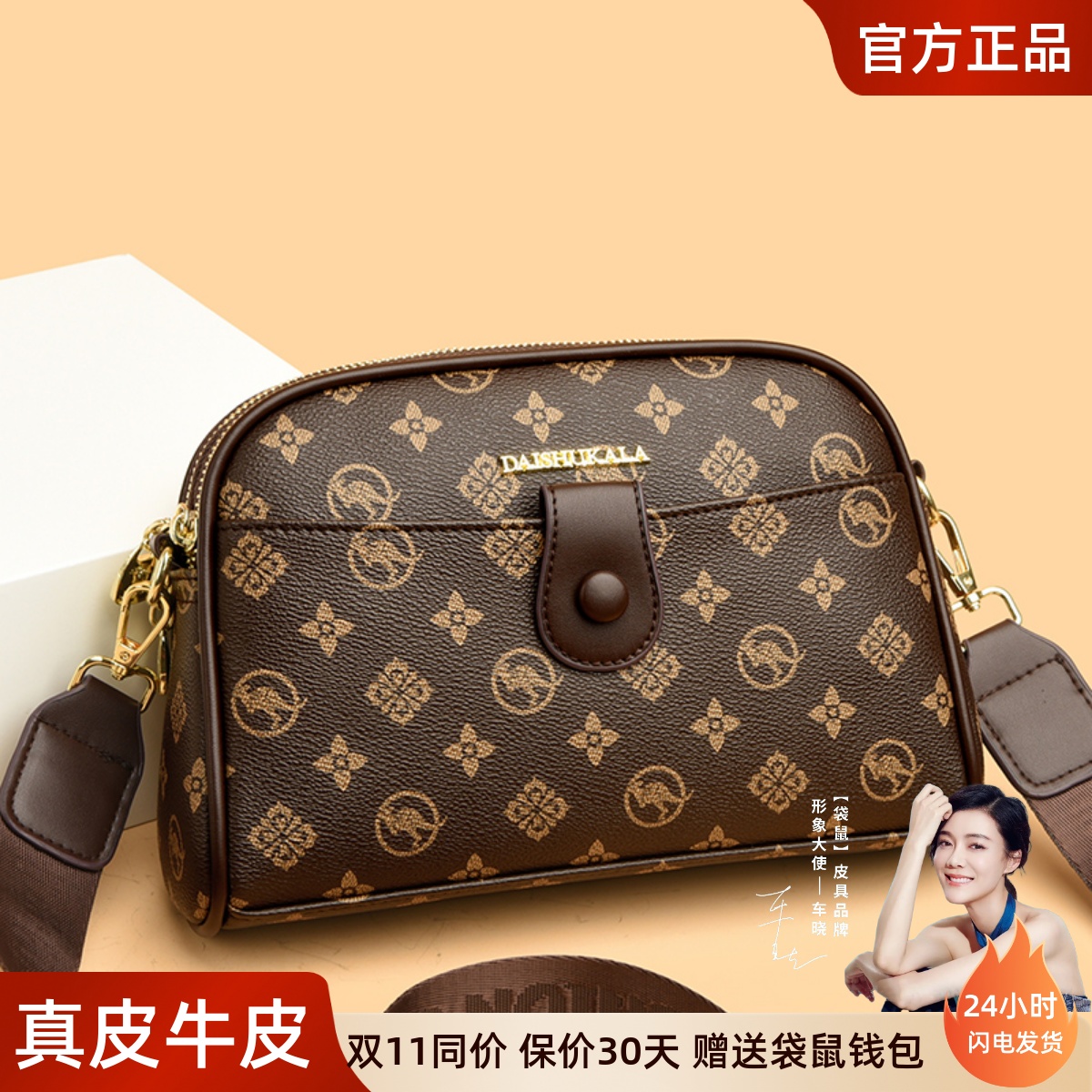袋鼠小包包女2025秋冬新款斜挎包真皮百搭轻奢时尚单肩包牛皮包包