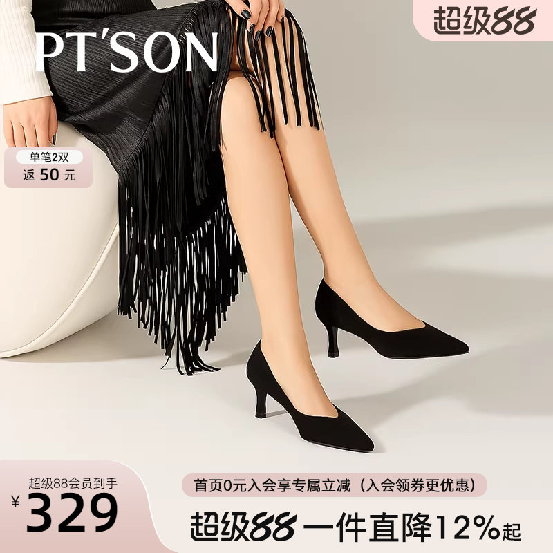 百田森夏商场同款真皮包头凉鞋女夏外穿细跟尖头不累脚工作鞋