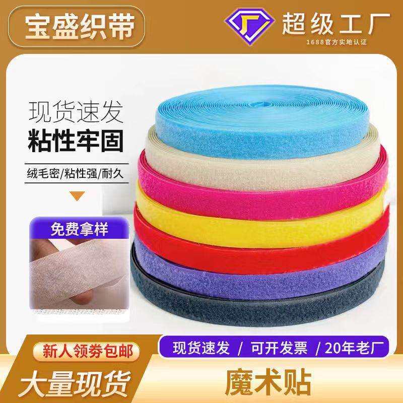 新品混纺魔术贴窗帘皮包字母扣粘扣带护腰彩色自粘带胶