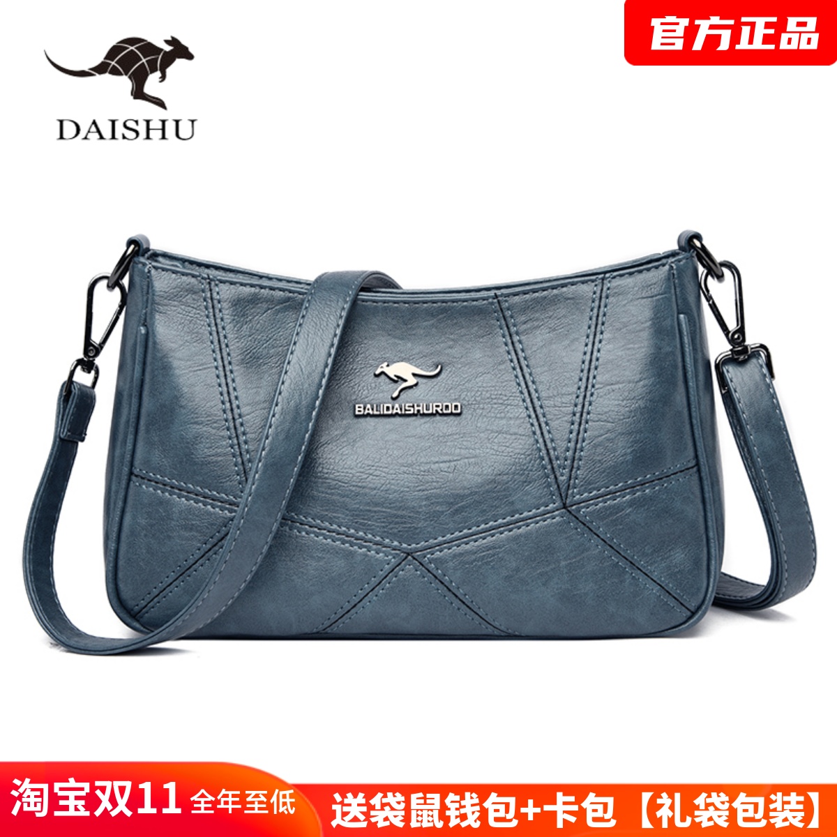 袋鼠女包皮包单肩斜挎包2025新款复古中年软软皮小包包送妈妈礼物