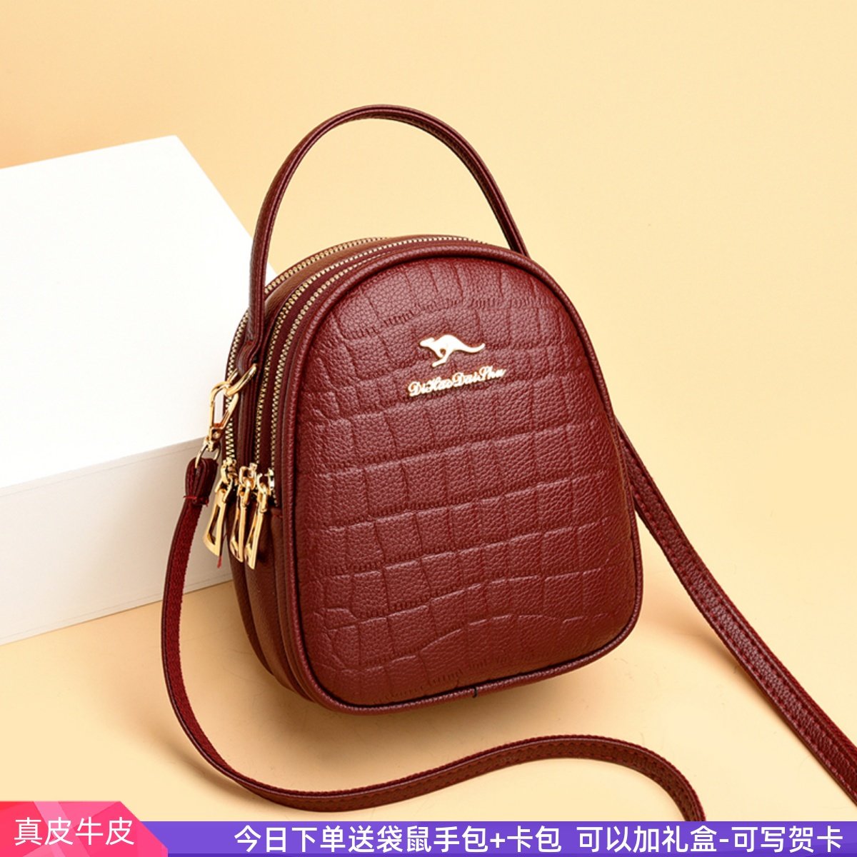 袋鼠真皮小包包三层女包2025夏季新款牛皮包放装手机包单肩斜挎包
