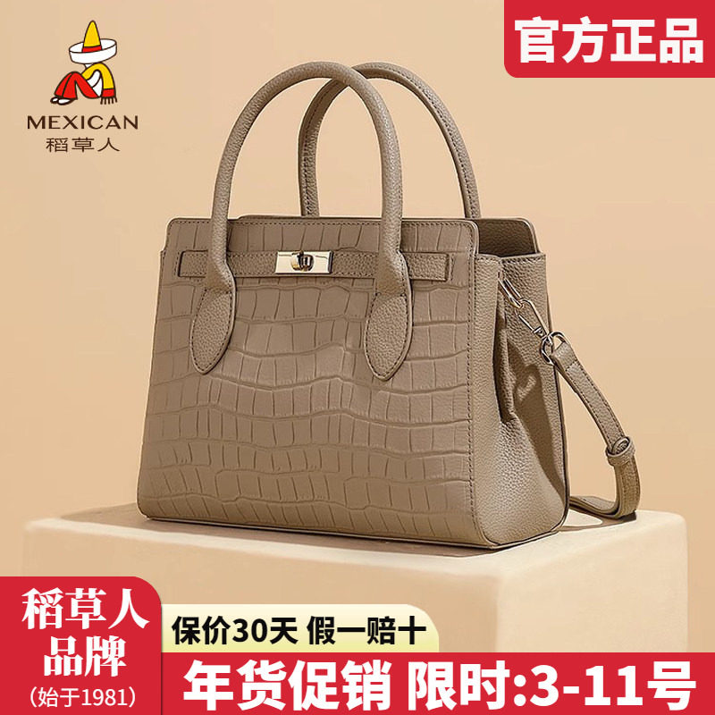 稻草人真皮包包女2025新款时尚手提包杀手包女休闲单肩斜挎包正品