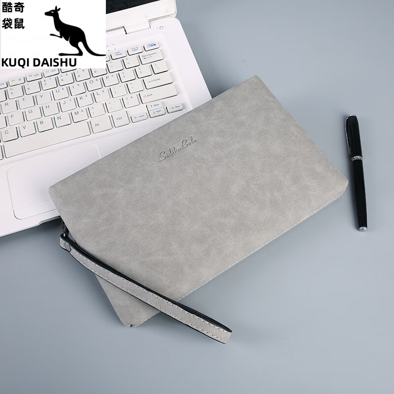 酷奇袋鼠(KUQIDAISHU)男士手包男包手拿包手提信封包包手机皮包休闲小夹包潮牌手拎包男 灰色小号