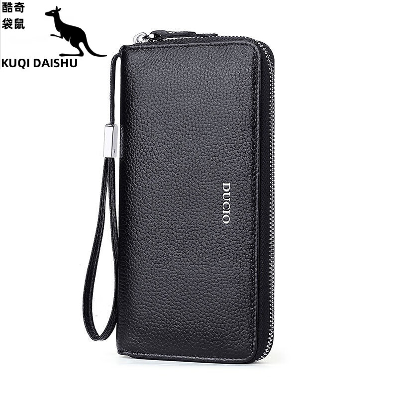 酷奇袋鼠头层牛皮钱包男长款真皮手包男款大容量多卡位皮夹皮包手拿包拉链 黑色【头层牛皮】推荐
