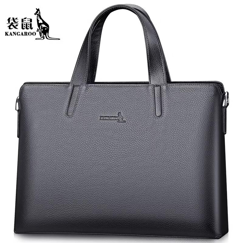 袋鼠(KANGAROO)真皮男包手提包商务简约公文包横款牛皮单肩斜挎包手拿皮包 黑色 其他规格