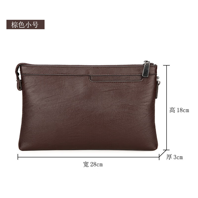 南啵丸男士商务手包软皮包大容量钱包手拿包休闲手夹包信封包真皮 经典款棕色小号(28*18*3)