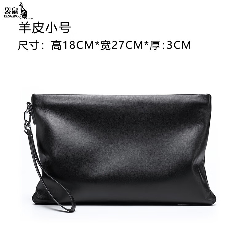 袋鼠(KANGAROO)男士手包真皮包羊皮信封包手抓包软皮牛皮大容量商务手拿包男款潮 黑色羊皮小号#