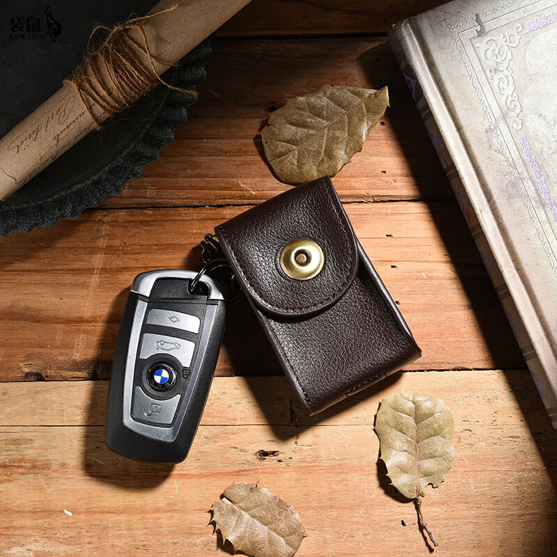 袋鼠(KANGAROO)穿腰带真皮包通用小巧迷你男挂皮带汽车钥匙腰包纯色钥匙位ifsnow 深咖色-赠送链条