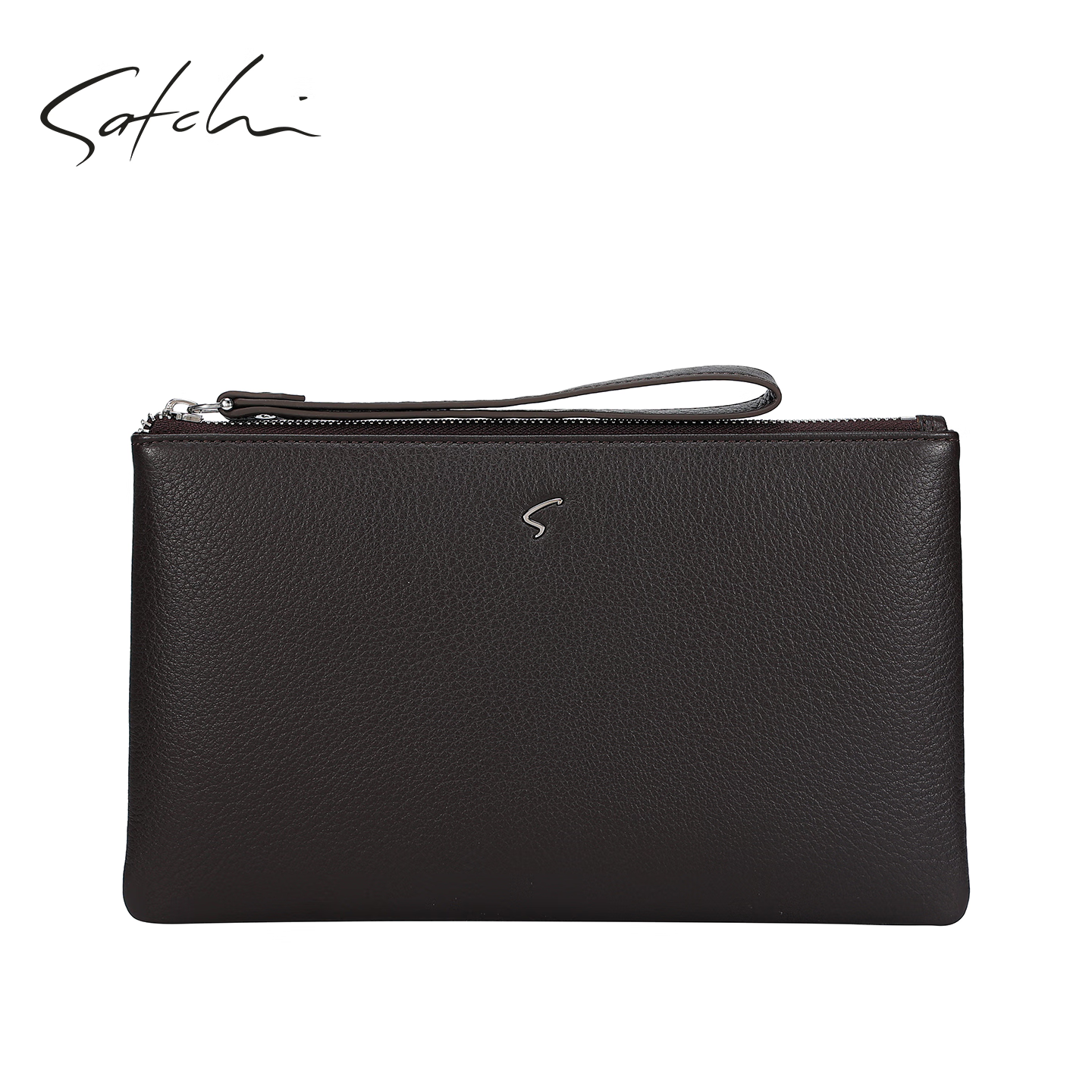 SATCHI沙驰手拿包新款男包真皮包高档信封包手腕包柔软亲肤鹿皮手抓包潮 啡色