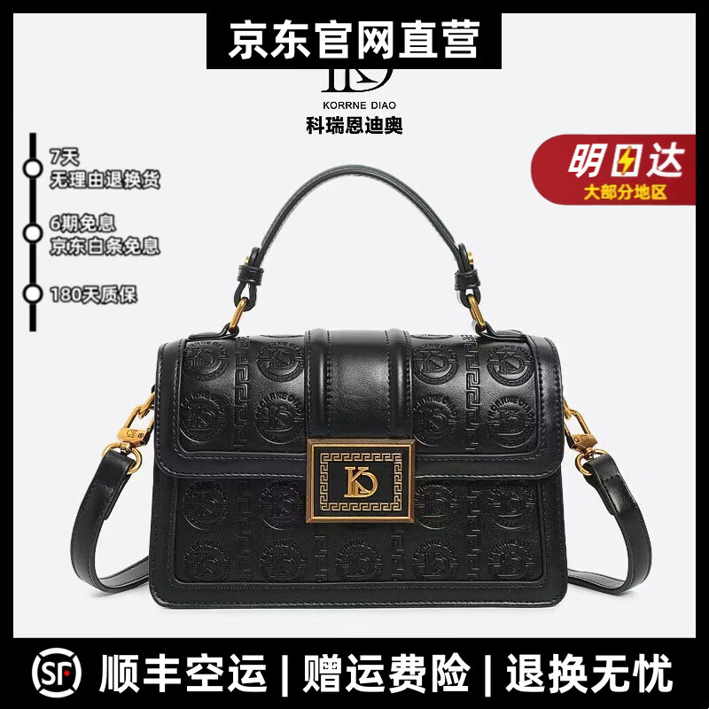BORDIFENASI轻奢品牌真皮包包女包小方包小方包精致压花翻盖斜挎包单肩包 黑色 23-8-14.5