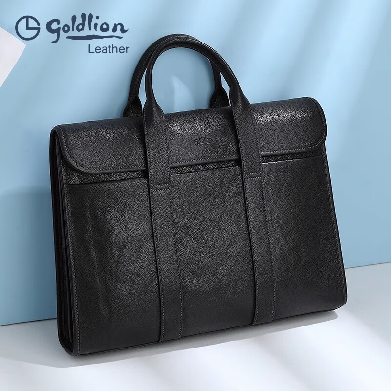 金利来(Goldlion)男包手提包商务头层牛皮包盖式办公包真皮差旅男士公文包 黑色 默认规格