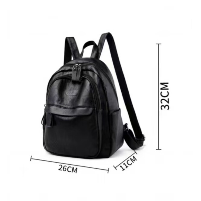 酷奇袋鼠(KUQIDAISHU)背包女2025新款双肩书包简约多口袋大容量休闲旅行轻便通勤软皮包 黑色标准款 可放iPad
