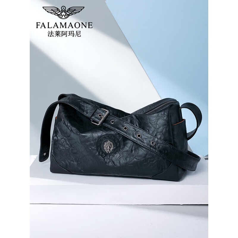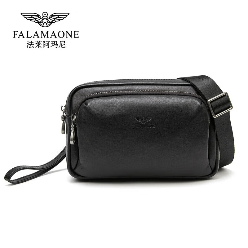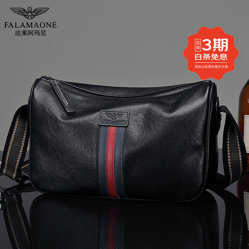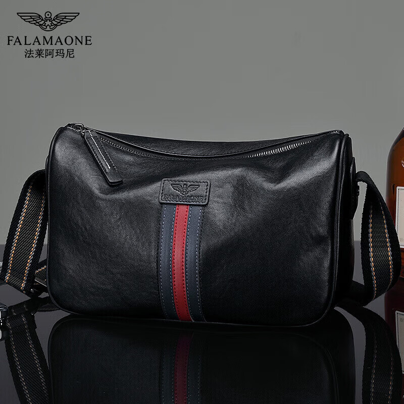 法莱阿玛尼(FALAMAONE)黑色单肩包法莱阿玛尼男士真皮包休闲时尚通勤小背包百搭牛皮包包 DJ130黑色