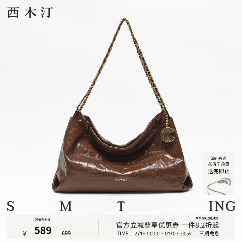 西木汀 悠途 头层牛皮包包女托特包大容量链条包 圣诞礼物 可可棕 中号