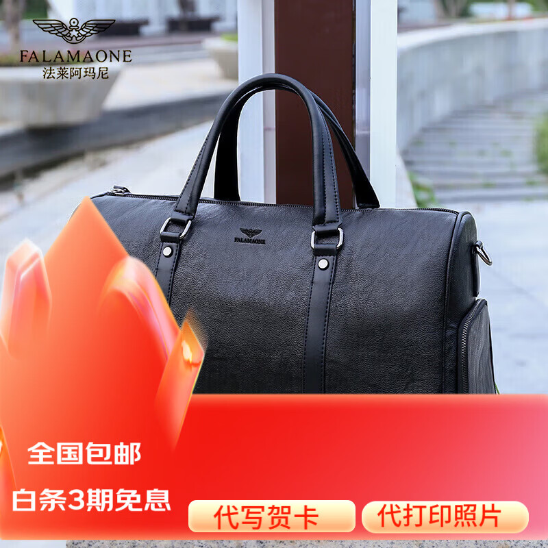 法莱阿玛尼(FALAMAONE)男包手提包单肩斜挎包男士旅行包潮流多功能软皮包 LX506 黑色
