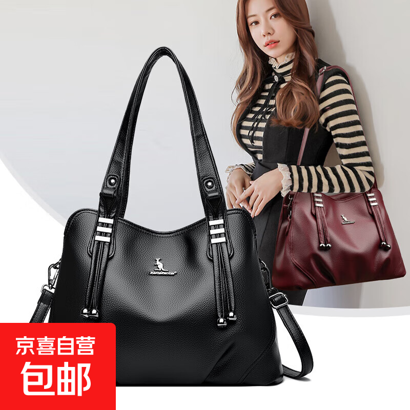 袋鼠包包女士新款秋季百搭中年单肩包大气妈妈包礼物斜挎皮包女包