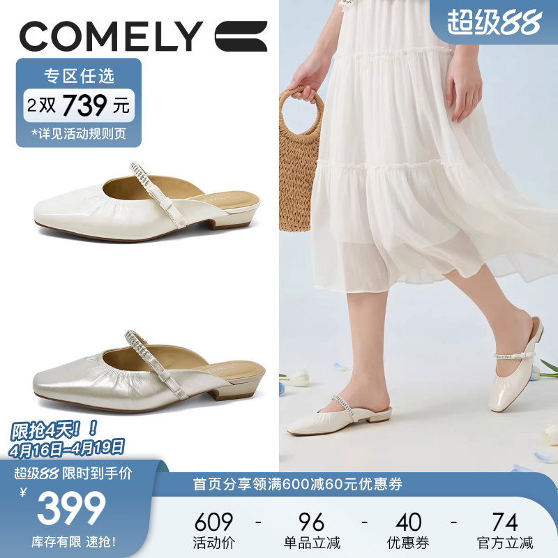 康莉低跟穆勒鞋女26年夏季新款玛丽珍法式优雅时尚真皮包头半拖鞋