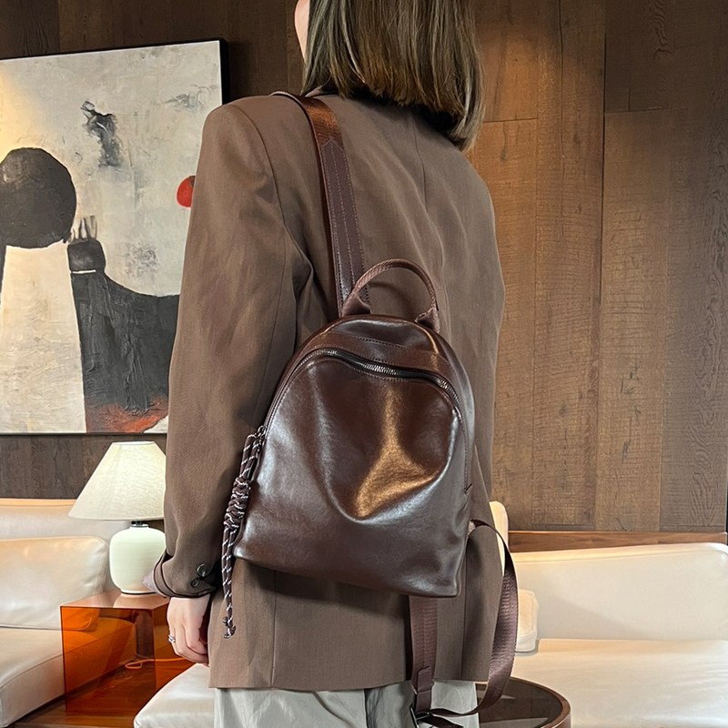 真皮背包头层植鞣牛皮高级感重工双肩包小包休闲软皮轻便小背包潮