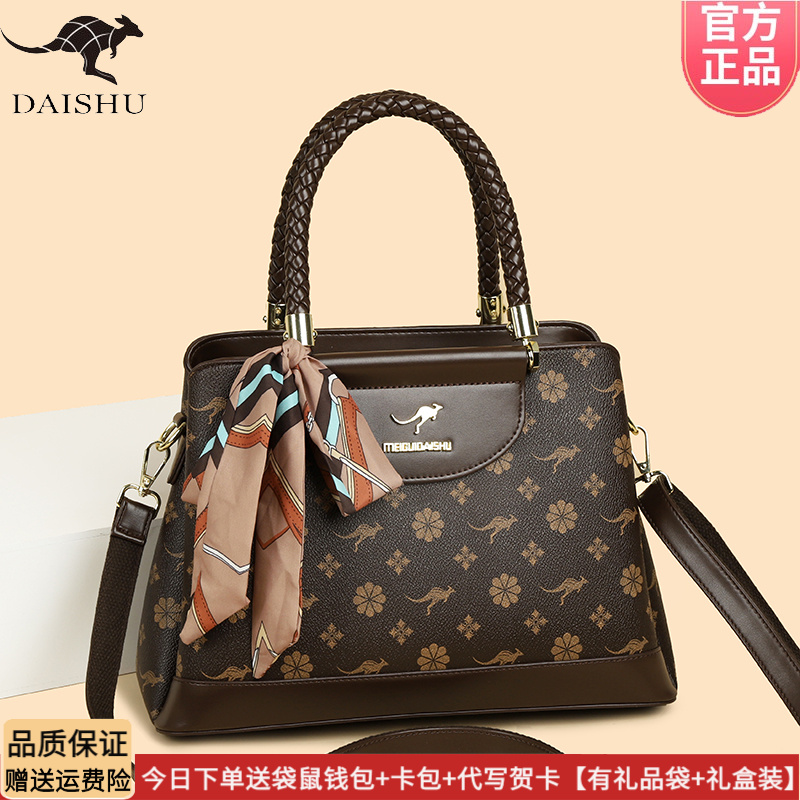 品牌送妈妈正品袋鼠女包手提包女士皮包2025新款斜挎包真皮中年包
