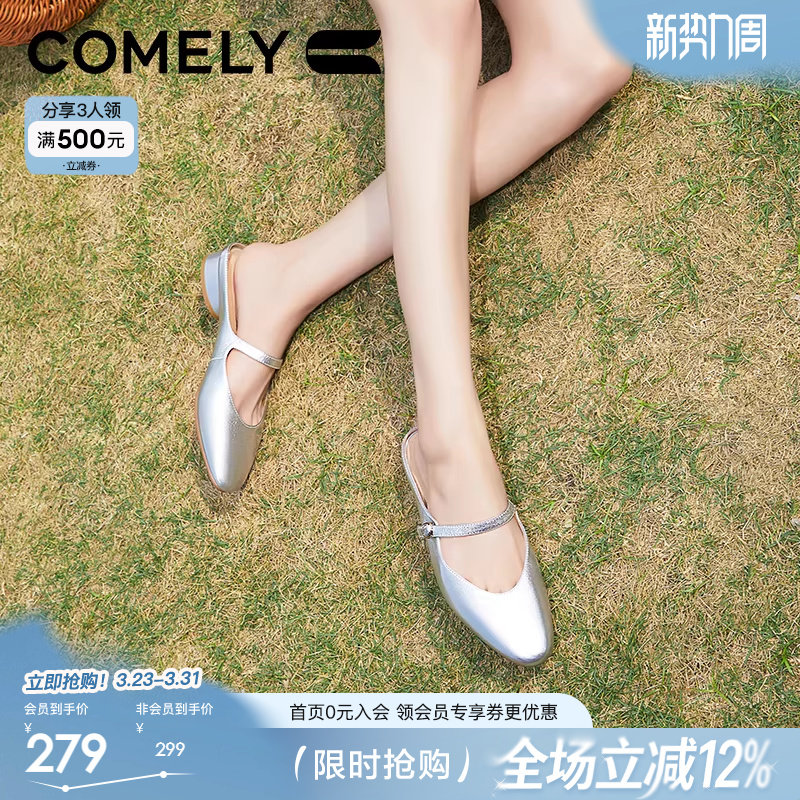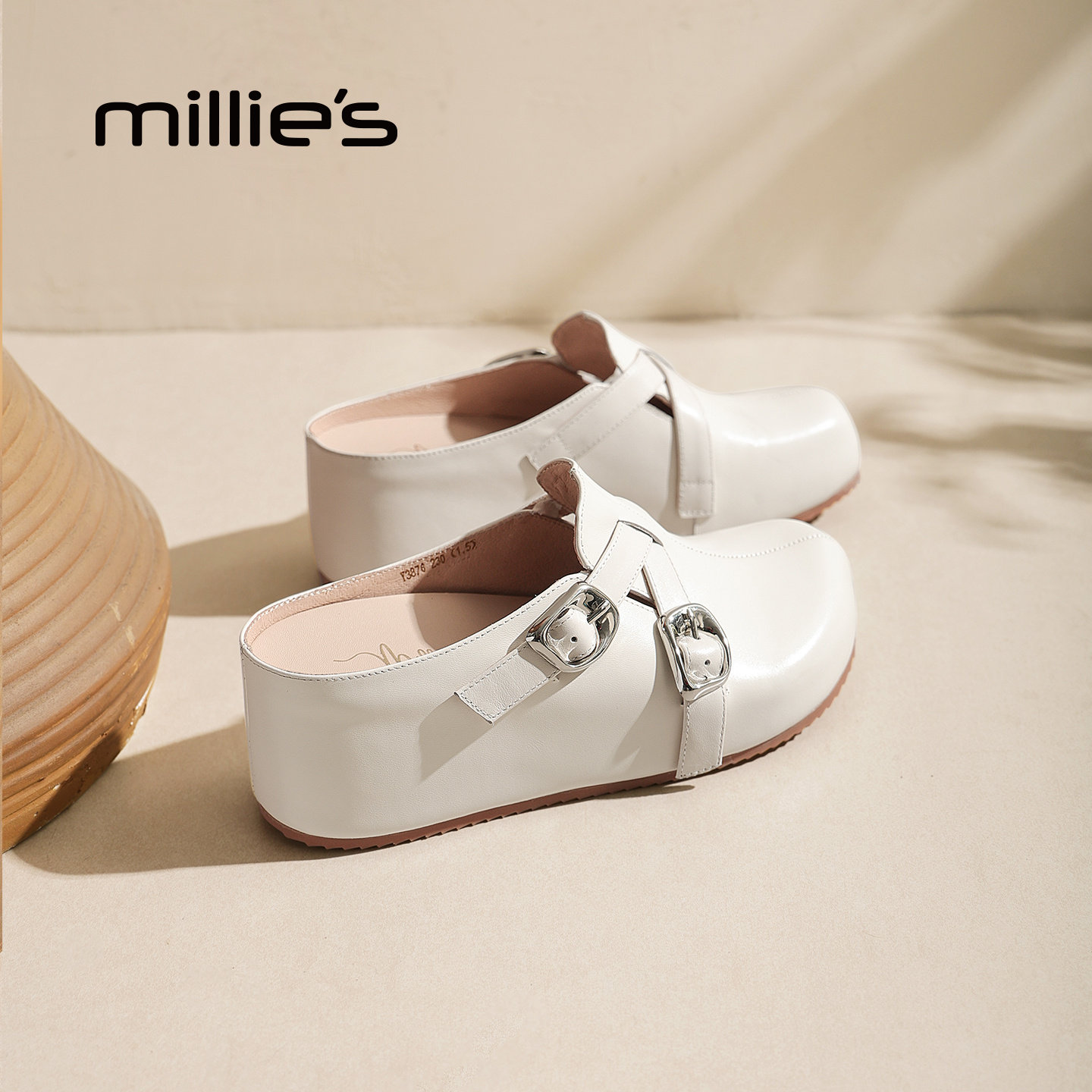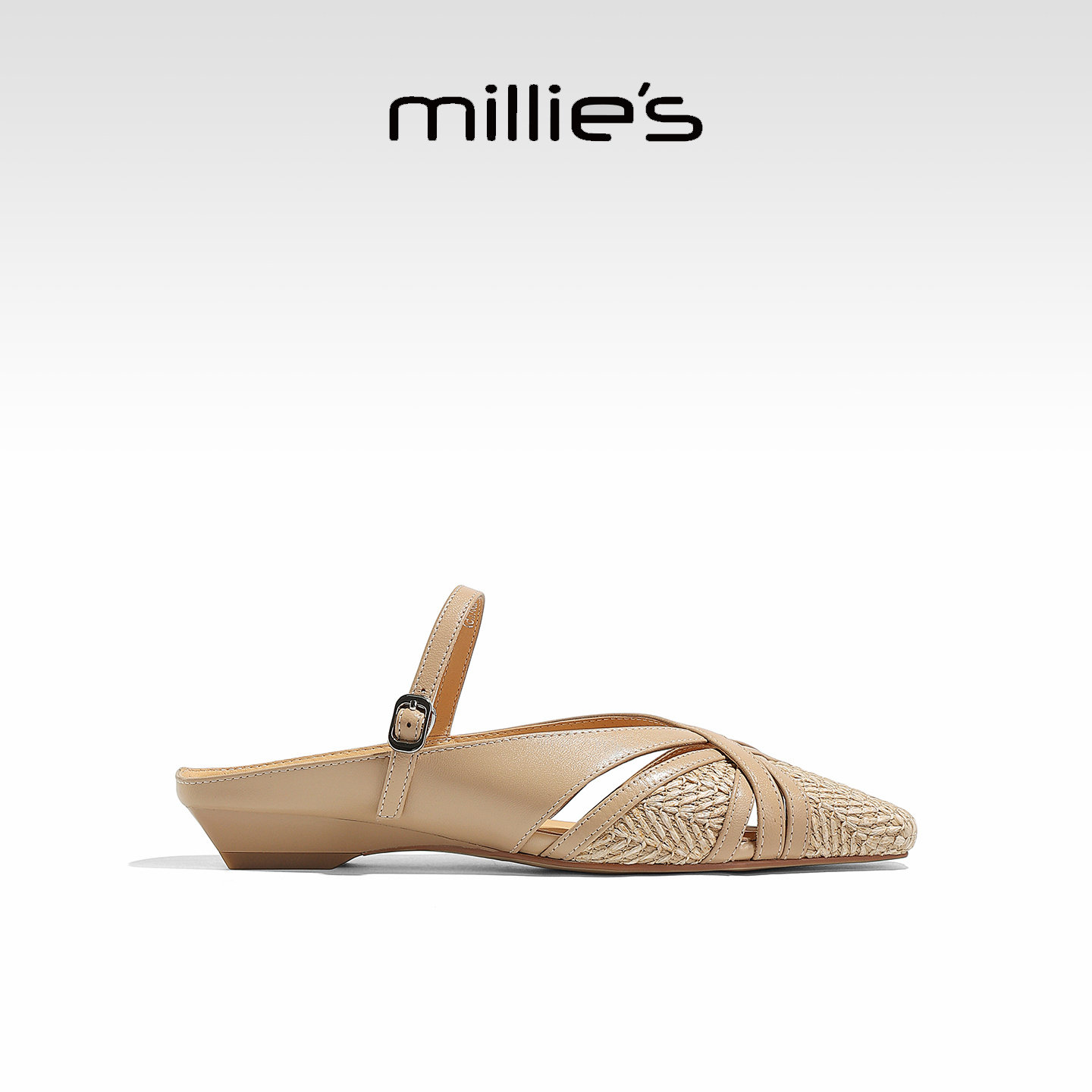 MILLIE'S/妙丽时尚外穿拖鞋2026夏款休闲一字式扣带真皮包头凉鞋