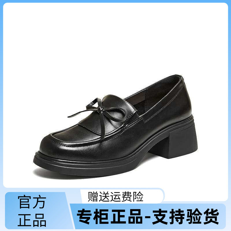 TATA他她粗跟小皮鞋女黑色乐福鞋女软底真皮包鞋2026新款CLC01AA6