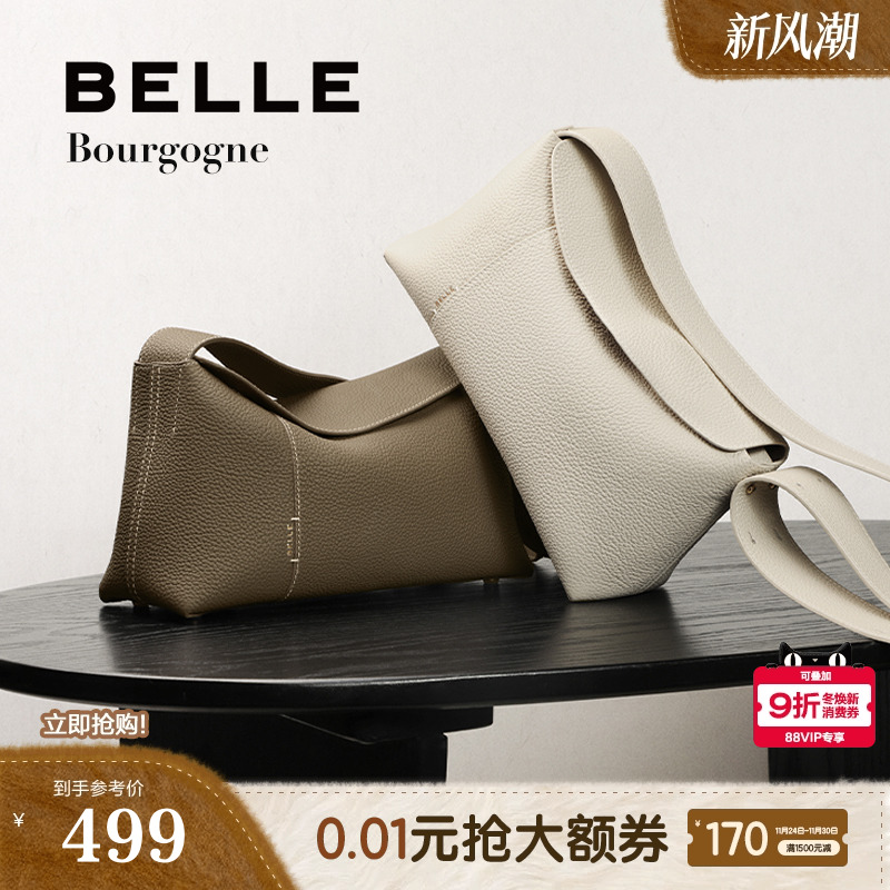 百丽反绒麂皮包包女25新款高级单肩斜挎手提水桶包菜篮子X7387CX5