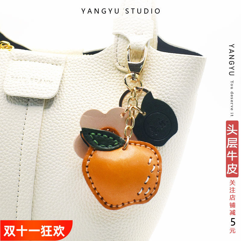【特价】头层牛皮包包挂件可爱水果汽车钥匙扣真皮加厚背包小挂件