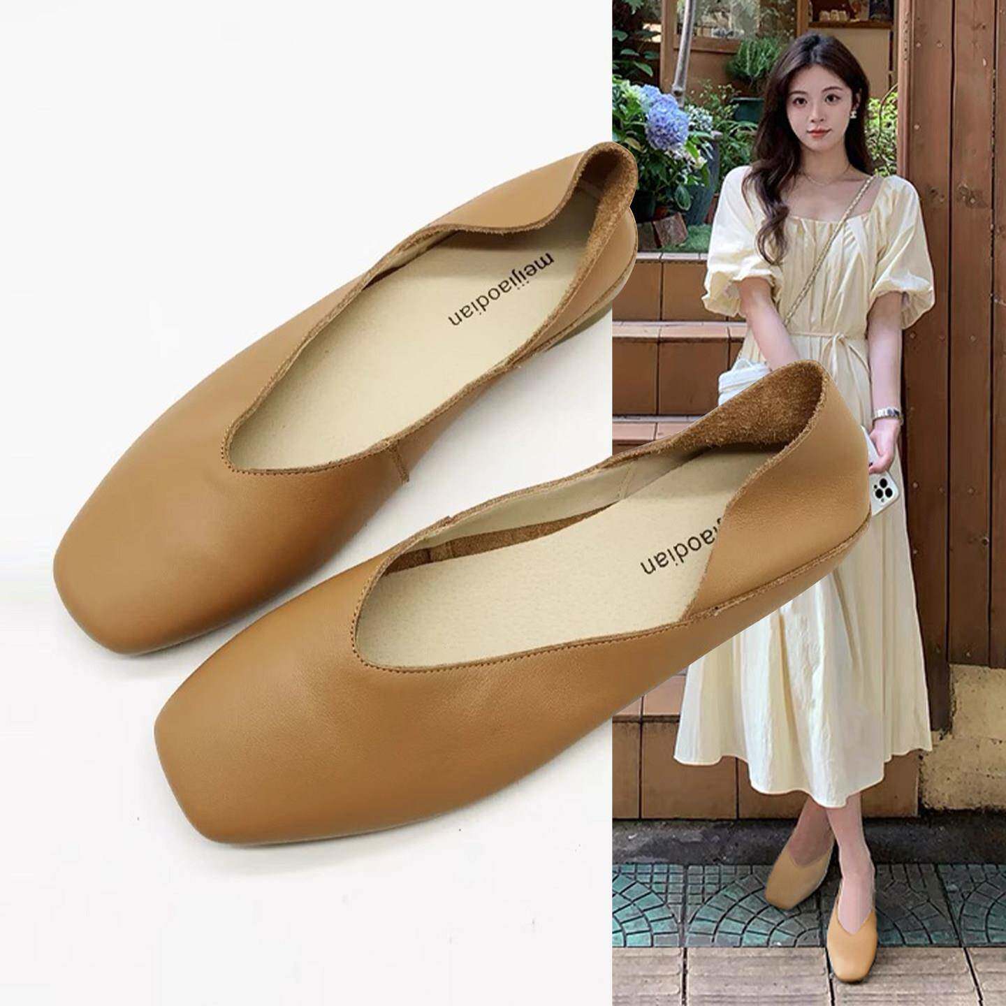香港奶奶鞋女平底软皮2025新款一脚蹬两穿豆豆鞋春秋软底真皮包鞋
